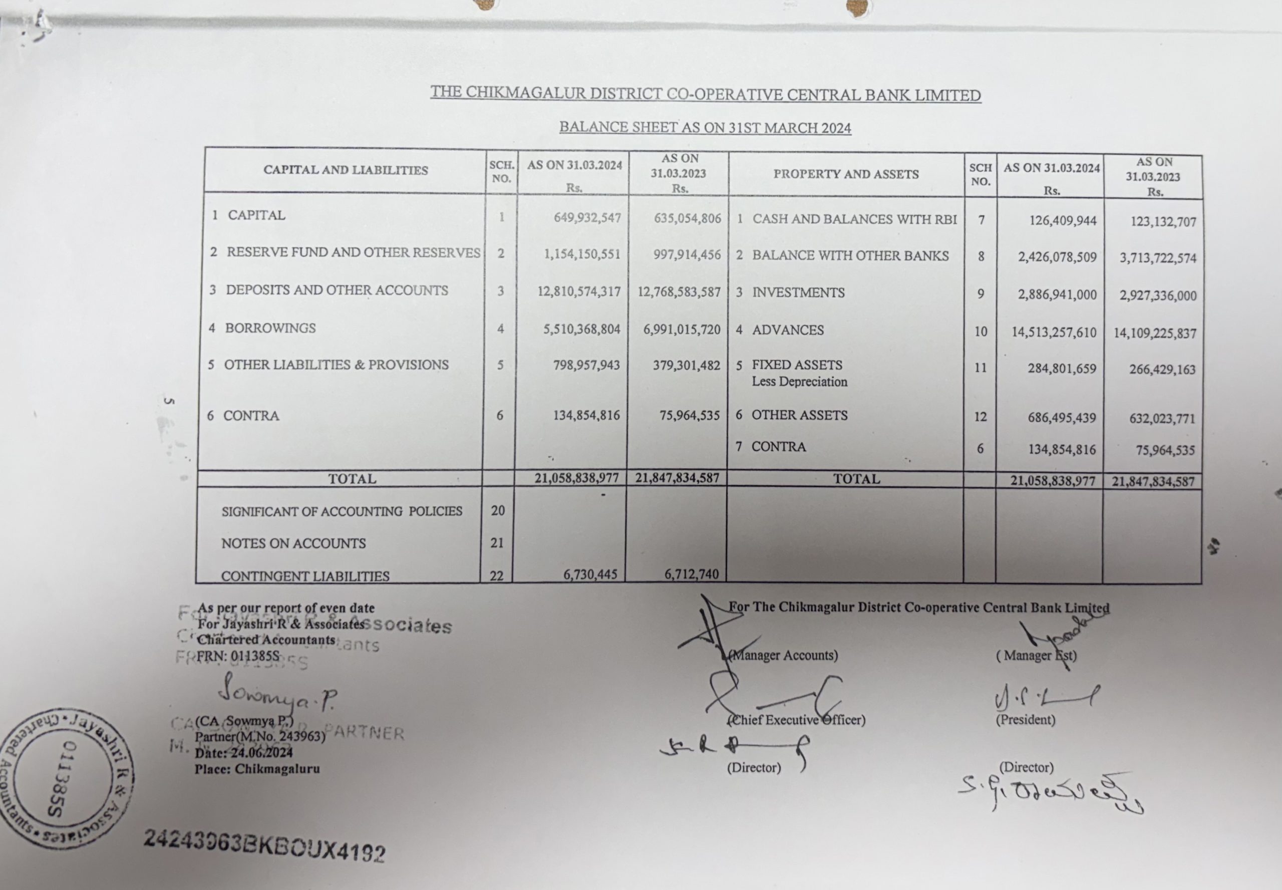 2. Balance Sheet as on 31st March 2024